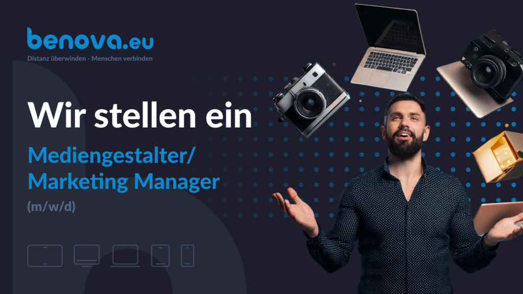 Benova ist die Plattform für moderne und persönliche Kundenkommunikation – spezialisiert auf Video Consulting, Video Service und digitale Service-Kabinen. Als innovatives Tech-Unternehmen helfen wir Banken & Dienstleistern dabei, ihre Kommunikation neu zu denken: digital, effizient und trotzdem persönlich. Wir wachsen schnell – und dafür brauchen wir kreative Köpfe mit einem Gespür für starke visuelle Kommunikation.